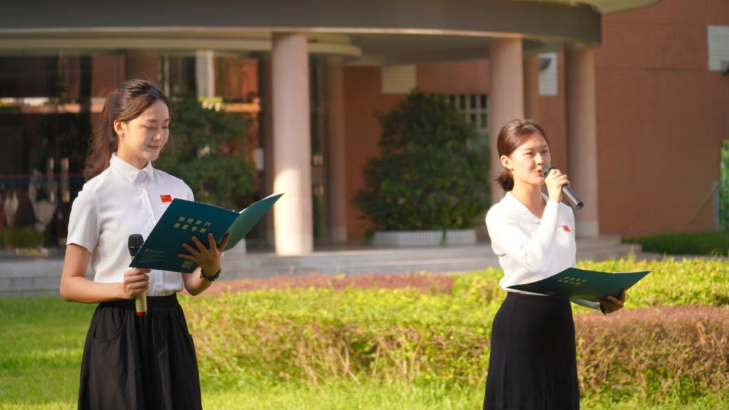 上午8时许,升旗仪式正式开始,师生齐聚升旗台前,共同见证这一庄严而神圣的时刻。伴着慷慨激昂的国歌声,五星红旗缓缓升起。