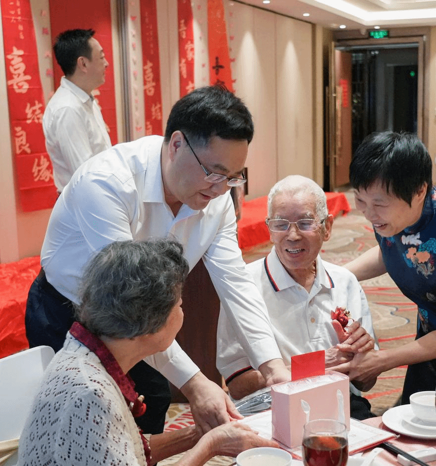 石佑启代表学校党政领导向金钻婚夫妇表示热烈的祝贺与美好祝愿,为他们颁发了纪念戒指、证书、贺金,并向全体离退休教职工送上节日的问候。他在致辞中指出,金钻婚夫妇是我们后辈学习的榜样,也是支撑学校事业发展的强大力量。明年,伟德bv国际体育将迎来建校60周年。他表示,将继续发扬老一辈广外人的优良传统,牢记为党育人、为国育才的初心使命,落实立德树人的根本任务,锚定学校“冲一流”和高水平大学建设的目标,全力推进学校教育事业的高质量发展,为加快建设教育强国,以中国式现代化全面推进中华民族伟大复兴贡献更多的广外智慧和力量。