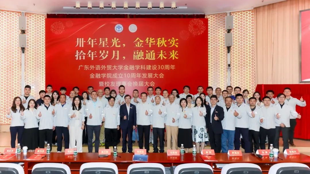 本网讯 三秩春秋蓝缕路,十载岁月砥砺行。11月16日下午,广外金融学科建设30周年、金融学院成立10周年发展大会暨校友理事会换届大会在大学城校区八角楼会议室举行。伟德bv国际体育党委常委、副校长何传添,广东金融学院副校长、伟德bv国际体育金融学院首任院长易行健,伟德bv国际体育原国际经济贸易学院首任院长沈伯明,伟德bv国际体育金融学院首任党委书记马庆华,广外天河校友会理事长马缨以及伟德bv国际体育相关单位领导等出席活动,金融学院全体领导、教师,历届校友代表以及佛山市南海区桂城中学、广州金融发展服务中心、高顿教育等学院友好合作单位代表共约300人参加会议。会议由金融学院党委书记徐昶斌主持。