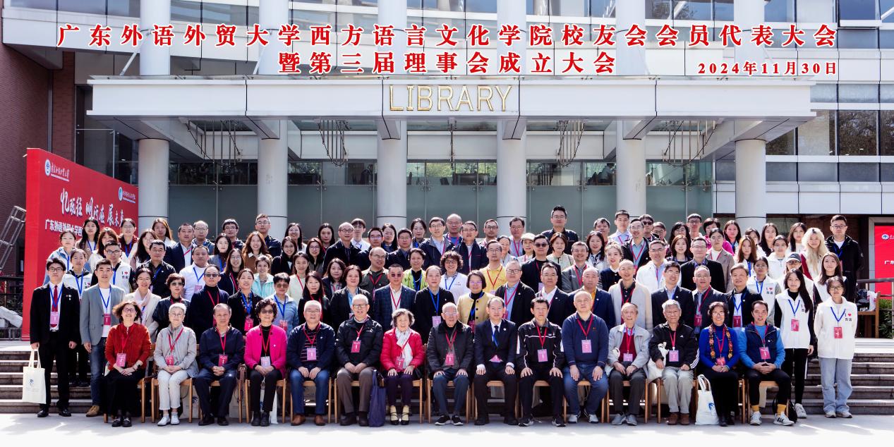本网讯 11月30日上午,西方语言文化学院校友会(以下简称“校友会”)会员代表大会暨第三届理事会成立大会在白云山校区图书馆报告厅举行。校党委常委、副校长申明浩出席大会并致辞。西语学院校友会第二届理事会成员、校友代表、学院领导及师生代表等100多人参加会议。会议由西语学院党委书记王秀民主持。