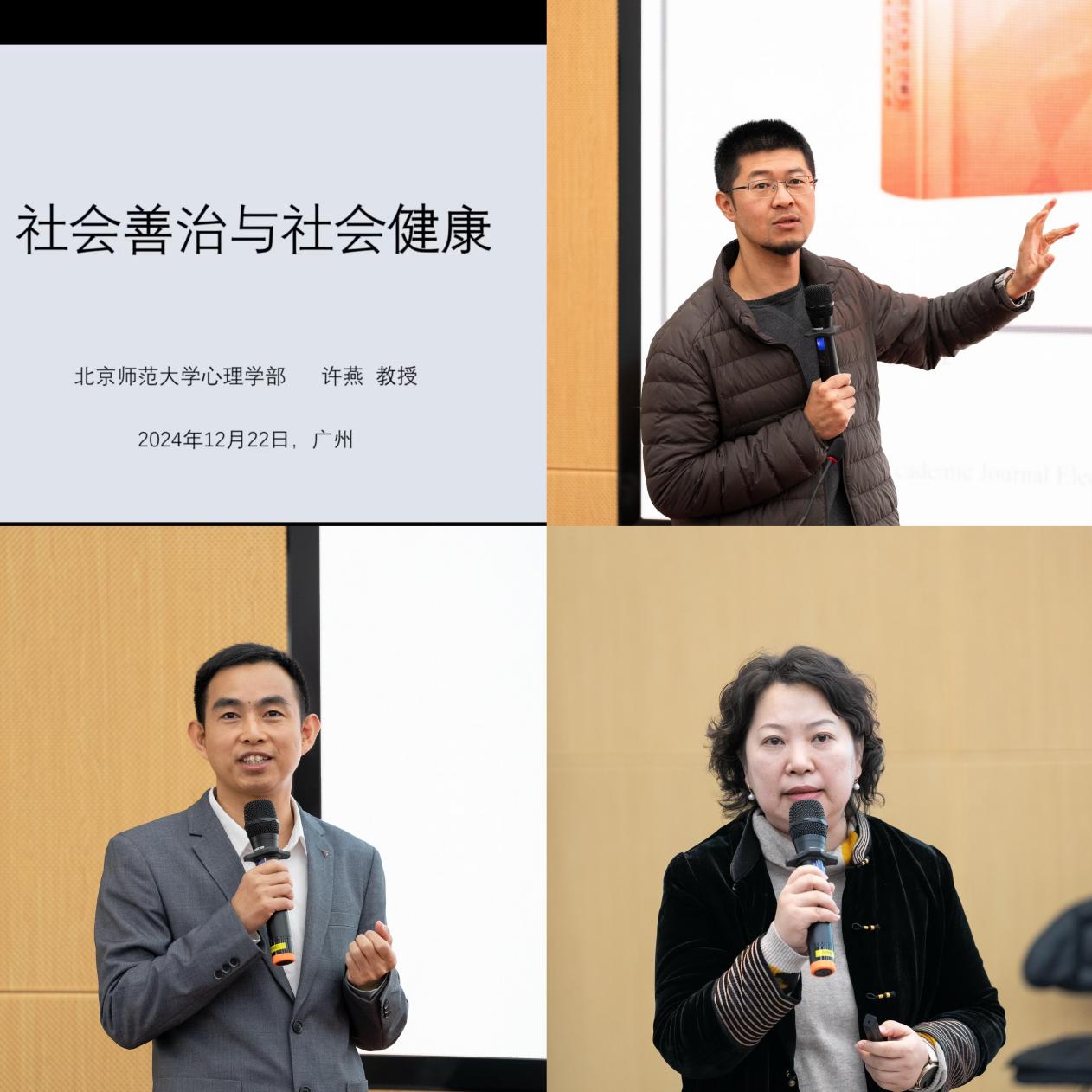 北京师范大学许燕教授、伟德bv国际体育张书维教授、广东警官学院杨俊峰教授和武警广东总队医院王晓丽主任医师通过线上与线下方式分别以《社会善治与社会健康》《从“社会治理心理学”到“行为治理”:公共治理新模式的探索》《社会综合治理创新的导向、经验与对策》和《青少年非自杀性自伤行为(NSSI)的发病与维持机制及其应对策略》为题作特邀报告。