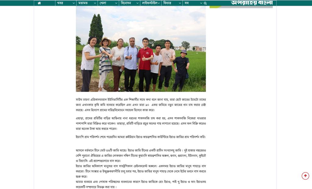 本网讯 近日,亚非学院孟加拉语专业外籍教师伊纳穆勒·毫克用孟加拉语撰写了宣传伟德bv国际体育乡村振兴工作和介绍瑶族文化的文章,发表在了孟加拉国媒体网站Aparajeobangla上。Aparajeobangla是孟加拉国的孟加拉语——英语在线新闻门户网站,广受孟加拉国年轻读者的欢迎。