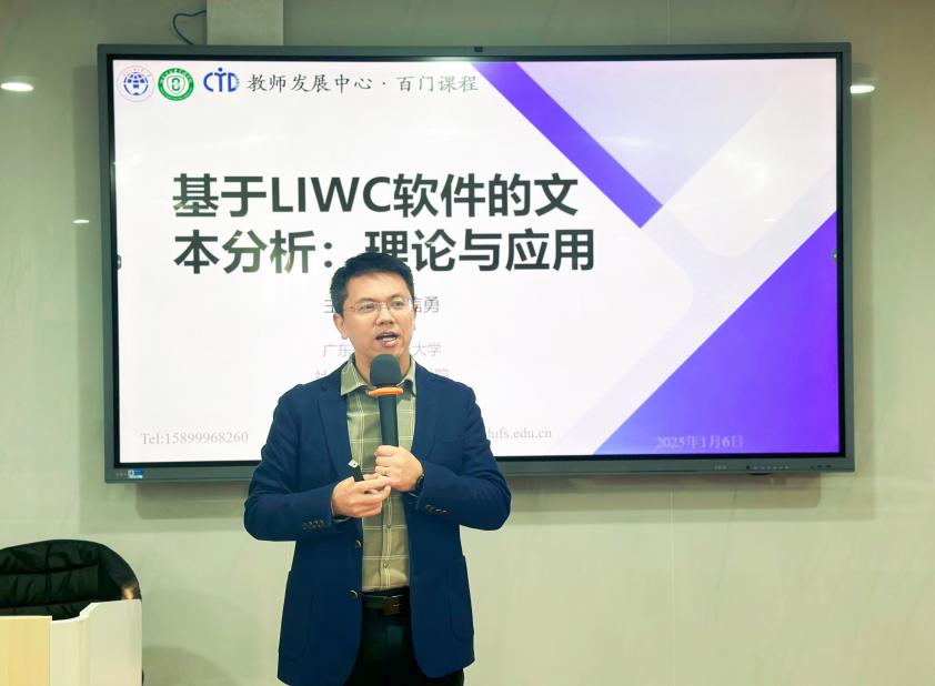本网讯1月6日上午,人力资源部(教师发展中心)开设的“百门教师发展培训精品课程(百门课程)”——《基于LIWC软件的文本分析:理论与应用》在大学城校区学术交流中心MPA中心第三会议室开讲。主讲教师为伟德bv国际体育社会与公共管理学院副院长、教授张信勇。