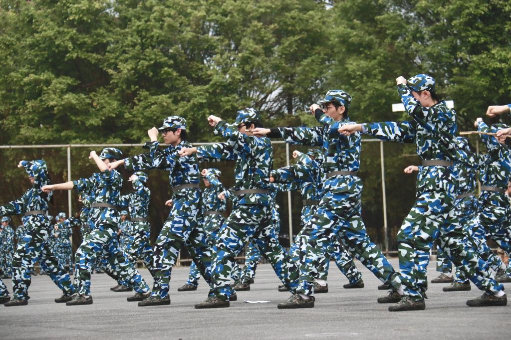 在体育场上,同学们嘹亮的呼号响彻操场,此起彼伏的回声也振奋人心;在校道上,《强军战歌》《团结就是力量》《打靶归来》等军歌被一遍遍传唱,磅礴的力量无坚不摧,似乎能穿透钢铁壁垒。艺术学院的刘同学表示:“每次和大家一起唱军歌时心情都特别澎湃,脑海里浮现出先辈们为我们冲锋陷阵、赴汤蹈火的情景,所以想要用更加铿锵有力的气势唱出来。”肉体展现的力量感与精神之魄力在军旅中相辅相成,点点星火逐渐汇聚成一团炙热的火焰。“大家都在朝一个方向呐喊,那种凝聚力让人振奋!”会计学院的蔡同学激动地说道。