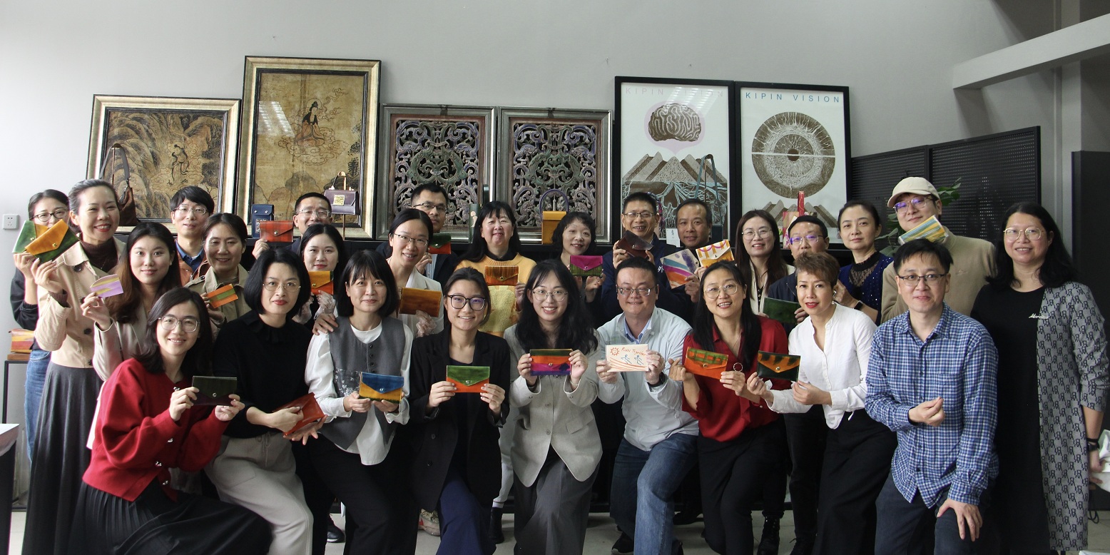 会前,与会嘉宾和师生走进艺术学院“润心工作室”,体验美育实践课程。在“植物拓印”活动现场,木槿花瓣的紫与香樟叶的翠,通过拓印锤的敲击跃然于帆布袋上;皮具DIY区域,葛小月副书记手持自制皮质钱包分享感悟:“接受创作的不完美,正是心理成长的必修课。”这种“以美润心”的具身体验,让参与者在心流创作中实现情绪纾解与自我接纳。