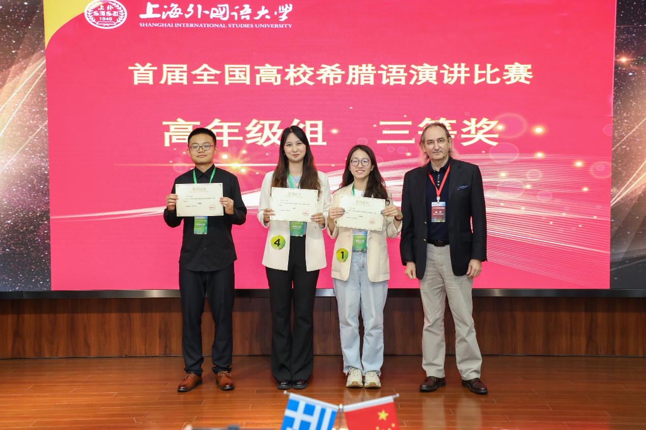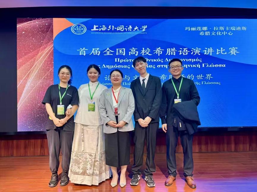 本网讯 6月7日,首届全国高校希腊语演讲比赛在上海外国语大学举行。在区域国别学院(国际关系研究院)希腊语系教师尚冰、张欢、周童苏联合指导下,希腊语系2024级学子秦艺荣获低年级组三等奖,2021级学子文子诵、张雨泉、张淳昕分别荣获高年级组二等奖、三等奖和优胜奖。