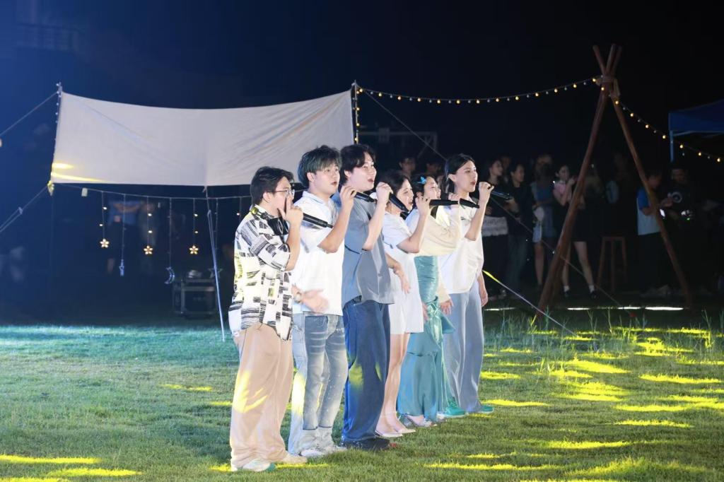 大学城校区下沉广场灯光璀璨,气氛热烈。本次节目包括舞蹈、乐队、合唱等多种形式。舞蹈《青春策略》以跃动的舞步拉开序幕;《像你这样的朋友》借歌曲述说着何其有幸,与你们相遇;歌曲《我们的明天》表达了同学们对青春时光的不舍;还有《匆匆那年》等歌曲展示着同学们的青春记忆,承载着大家对青春的解读;《裹着心的光》悠扬的歌声带领观众走进追梦者的驰骋世界,充满信念的歌词诉说着对梦想的执着与向往;原创歌曲《风的力量》展现出对青春的独特解读;值得一提的是,研究生支教团也以《日不落》一曲,彰显出广外青年青春风貌,他们用清亮的歌声宣告:“广外青年的青春,不仅在校园里绽放,更将在西部的土地上扎根生长”。
