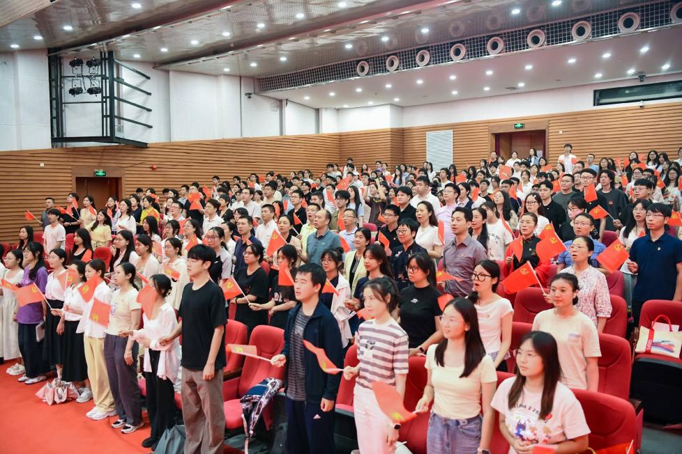 党课尾声,所有参演人员和观众齐唱《没有共产党就没有新中国》,在场师生饱含深情,唱出亿万中华儿女由衷的心声。经典的红色旋律激励着广外人在学思践悟中筑牢信仰,将理论学习成果转化为服务国家战略、融入区域发展的具体行动,在人才培养、科学研究、社会服务、文化传承创新的广阔天地中担当作为。