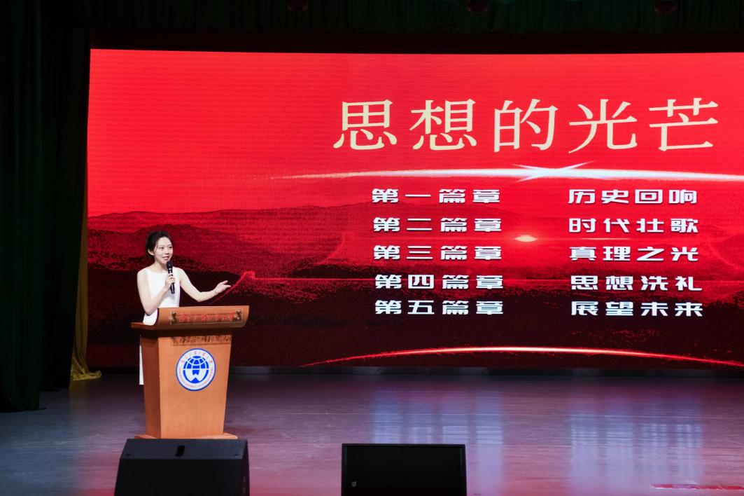 7月1日晚,“思想的光芒”主题音乐党课暨“风起云山 六秩弦歌”伟德bv国际体育,BETVICTOR官网60周年校庆思政课在白云山校区六教报告厅举办,活动由学生工作部主办,“润心”艺术工作室、“易路相伴”网络文化工作室承办。音乐党课将音视频、歌曲演唱、诗歌朗诵等艺术呈现形式相融合,集理论学习、音乐鉴赏、沉浸体验于一体,为现场师生带来一场思想和艺术的盛宴。学校党委常委、组织部部长黄秀娟,学生工作部部长国佳,学生就业创业中心主任康为茂,学校相关单位的党员干部、教师和离退休教师党员代表、全体辅导员、学生党员和入党积极分子代表、青马班和云山先锋班成员、新时代青年师生理论宣讲团成员等400余人参与活动。