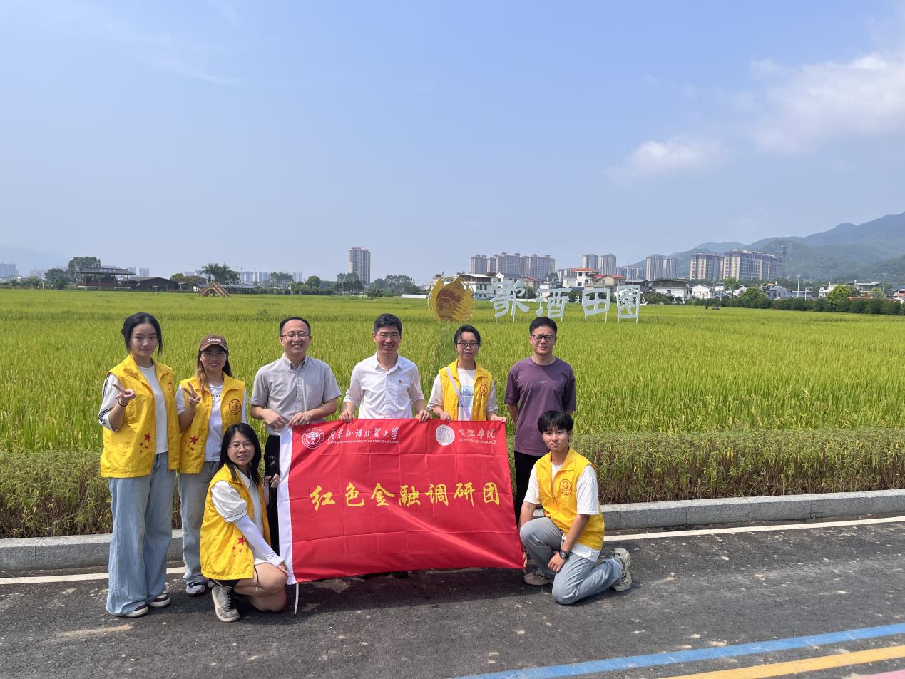 在梅州,调研团积极响应蕉岭县“百千万工程”突击队行动,共青团蕉岭县委书记何伟东为调研团授旗。在启动仪式上,广外金融学院党委书记徐昶斌书记作为高校代表发言,提出“向下扎根、向上生长、向远笃行”三点期望。通过田野调查和口述史整理,调研团梳理了蕉岭红色金融历史脉络,重点考察了红色金融基因在乡村振兴中的现代转化:深入走访蕉岭农商银行三圳支行,与行长及金融特派员交流“整村授信”普惠金融模式。该模式由村党支部牵头信用评定,创新运用应收账款质押、灾后快速贴息贷款等政策,实现“贷款秒达”,精准支持特色种植产业。调研团还实地调研了芳心村葡萄园、长潭镇白马村“一粒米”农文旅综合体,了解“悦农e站”线上平台服务及“红色研学+采摘”等文旅融合新业态,探索金融支持特色产业发展的有效路径,为当地发展注入青春动能。