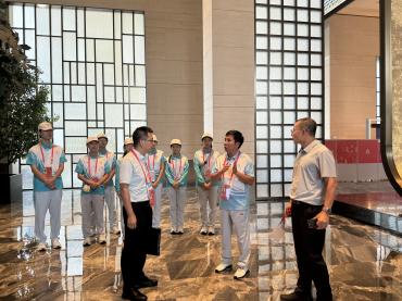 志愿服务期间,市执委会志愿者部部长郭创锐等一行前往越秀万豪酒店实地了解十五运会接待酒店志愿者服务保障工作情况。调研中,郭创锐亲切慰问在岗志愿者,关切询问工作安排、后勤保障及生活状况,对志愿者们的辛勤付出与专业表现给予充分肯定,并强调要切实做好志愿者的后勤保障与安全防护工作,为志愿服务的顺利开展提供有力支持。