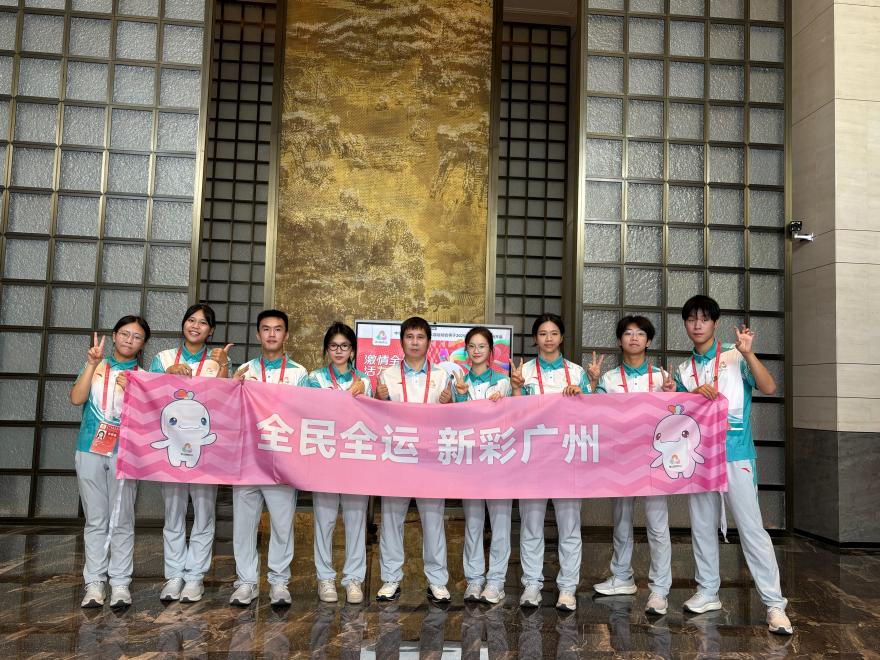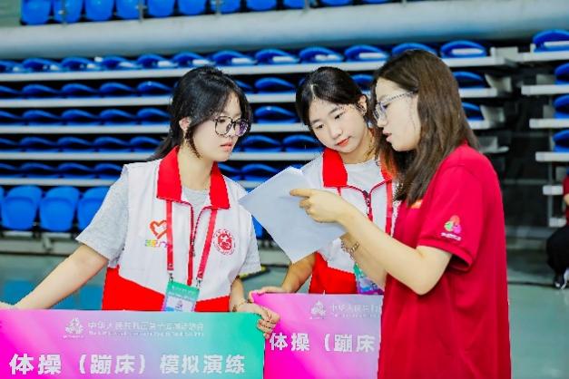 本网讯 近日,第十五届全国运动会体操(蹦床)模拟演练赛在广州体育馆举行。赛事期间,伟德bv国际体育选派10名十五运会广州赛区志愿者骨干在2名领队老师,正式亮相服务岗位,以专业素养和青春活力为赛事保驾护航。