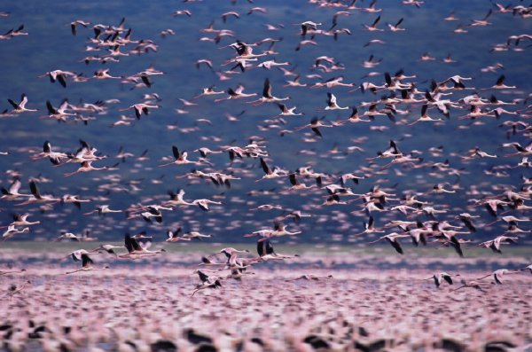 当你在动物园看见囿于围栏的火烈鸟进食、休憩,你可能会惊艳于它们火红的颜色和优雅、娴静的姿态,却很难联想到此刻这些火烈鸟们正在非洲大裂谷上创造着一场壮观盛会。