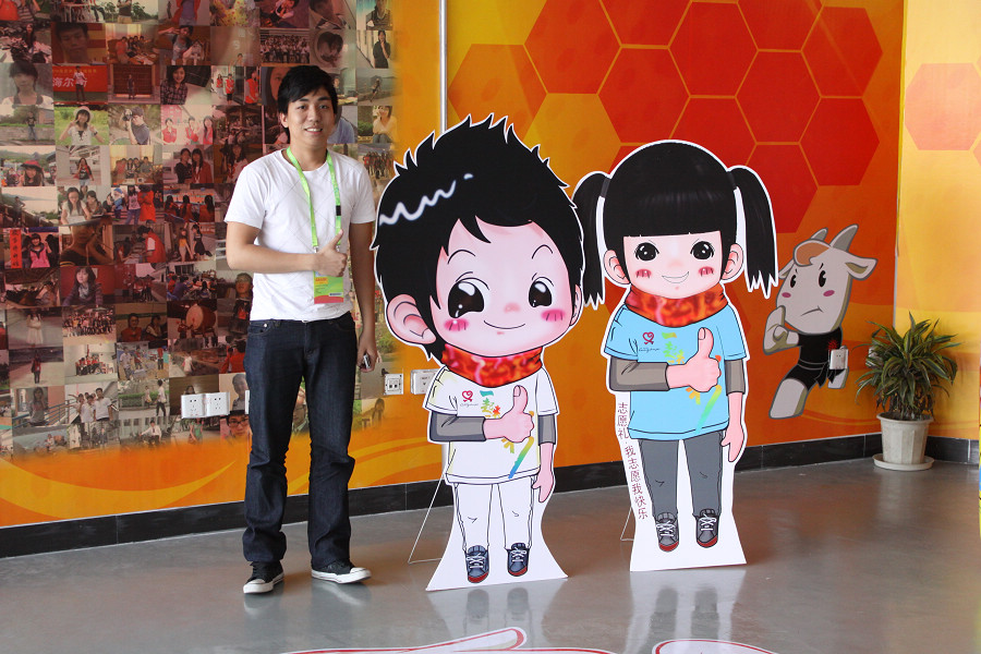 参加今年的亚运会志愿服务,他说,“我推掉了一家公司的工作”,这让很多人相当不解。在就业率日益趋低的大环境下,找到工作对于很多人来讲都是非常难得的事情。他说,“这份工作是通过广交会这个契机得到的”,因为自身能力加上会西班牙语的优势,一家巴西公司请他帮忙拓宽中国市场。为了不与亚运志愿服务相冲突,他决定放弃工作而选择服务亚运。也许很多人不懂,但这就是亚运对于他的魅力。
