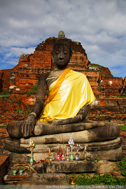 为佛像穿衣可以积德,当战火来临时,佛像却还是以安详的眼神看着大城的人民流血,甚至连佛像本身也被损坏。