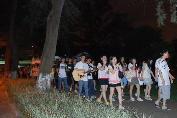 师弟师妹在2栋楼下隔路唱《真的爱你》等歌曲为我们送行 谢谢你们,2010年6月20日晚那些可爱的人们!♥