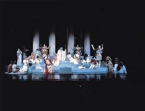 在古希腊,在葡萄熟了的时候要举行盛大祭奠活动,以敬酒神狄奥尼索斯。在歌舞中扮演“羊人”的人物,头戴羊角,身披羊衣,穿插在酒神的颂歌中间,戏剧就是这样产生。由此可见,悲剧来源于古希腊的酒神祭祀活动,这从源泉上暗喻了古希腊悲剧的产生总是与神话紧紧联系在一起。另一方面,在西方的审美意识形态中,悲剧开始时作为戏剧剧种,但由于它出色的成就和不朽的创造力,后来便逐渐成为是其中界定相对稳定的审美意识形态,这种意识形态的界定具有深厚的人生境界的底蕴,主要展示了人与自然、人与命运、个人情感与国家命运等等无法调和的写照。