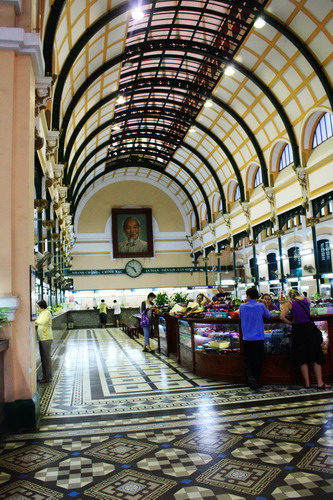 西贡邮局。模仿的是万国博览会大楼,屋顶是彩绘玻璃窗。