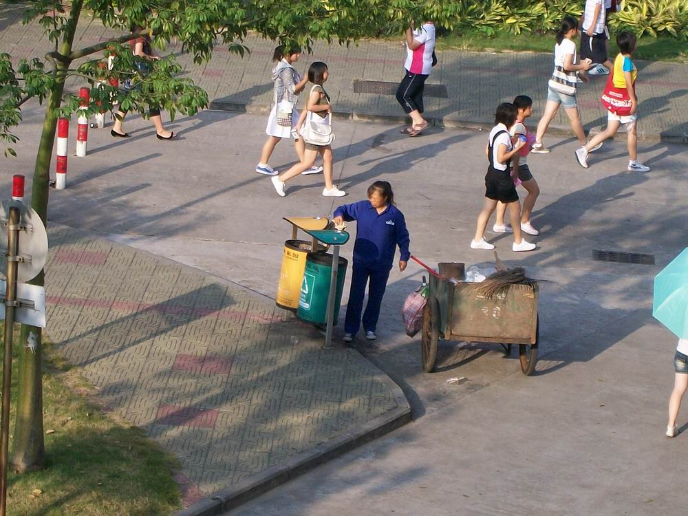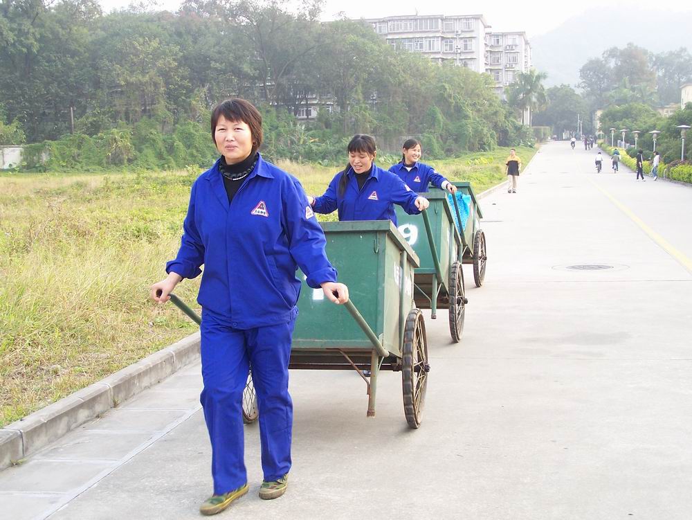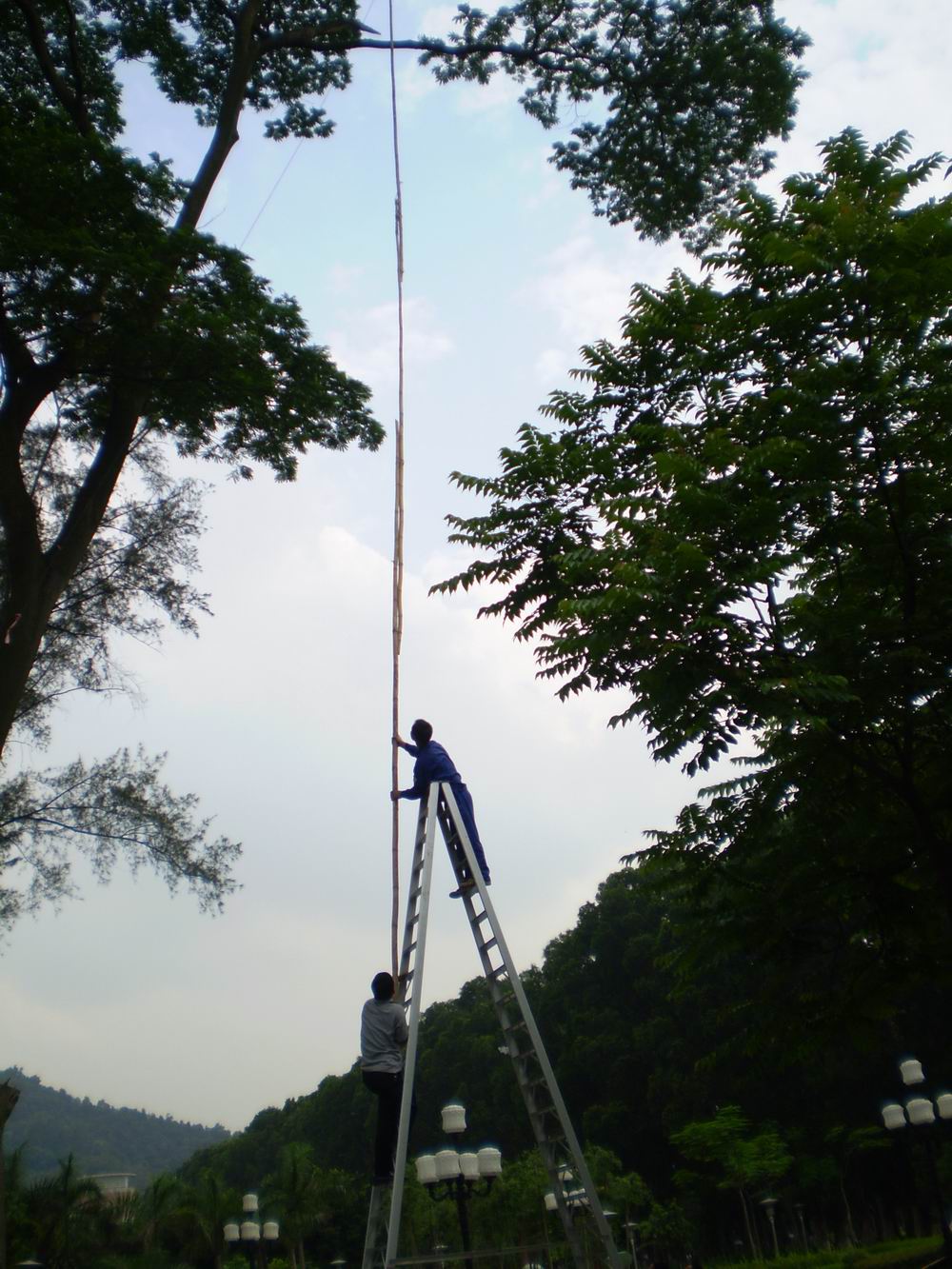一米七的身躯,撑着将近二十米的竹竿,站在六米高的云梯上不断地抖落参天大树上的枯枝。每值秋天,看见如此一幅画面,都经不住惊叹这些人的勇敢。师生安全是他们心之所系。