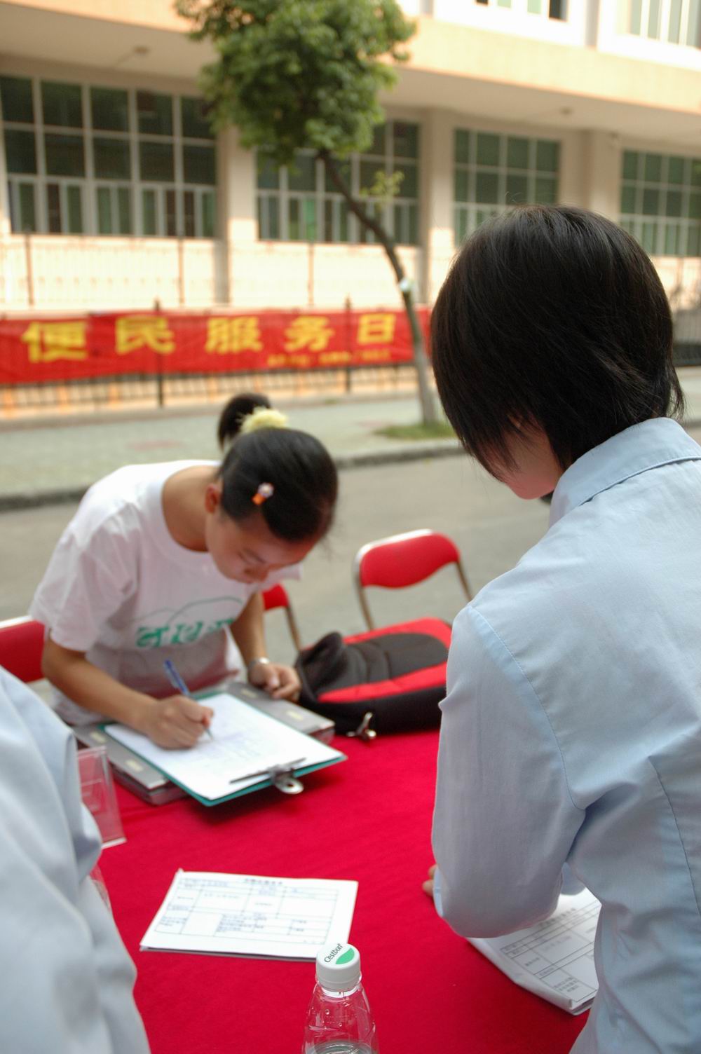 每一次的便民服务日都会为学校的师生们解决很多生活上的小烦恼。07年11月,在相思河畔一次便民服务日的现场,工作人员正在耐心地指导学生填写维修登记表。