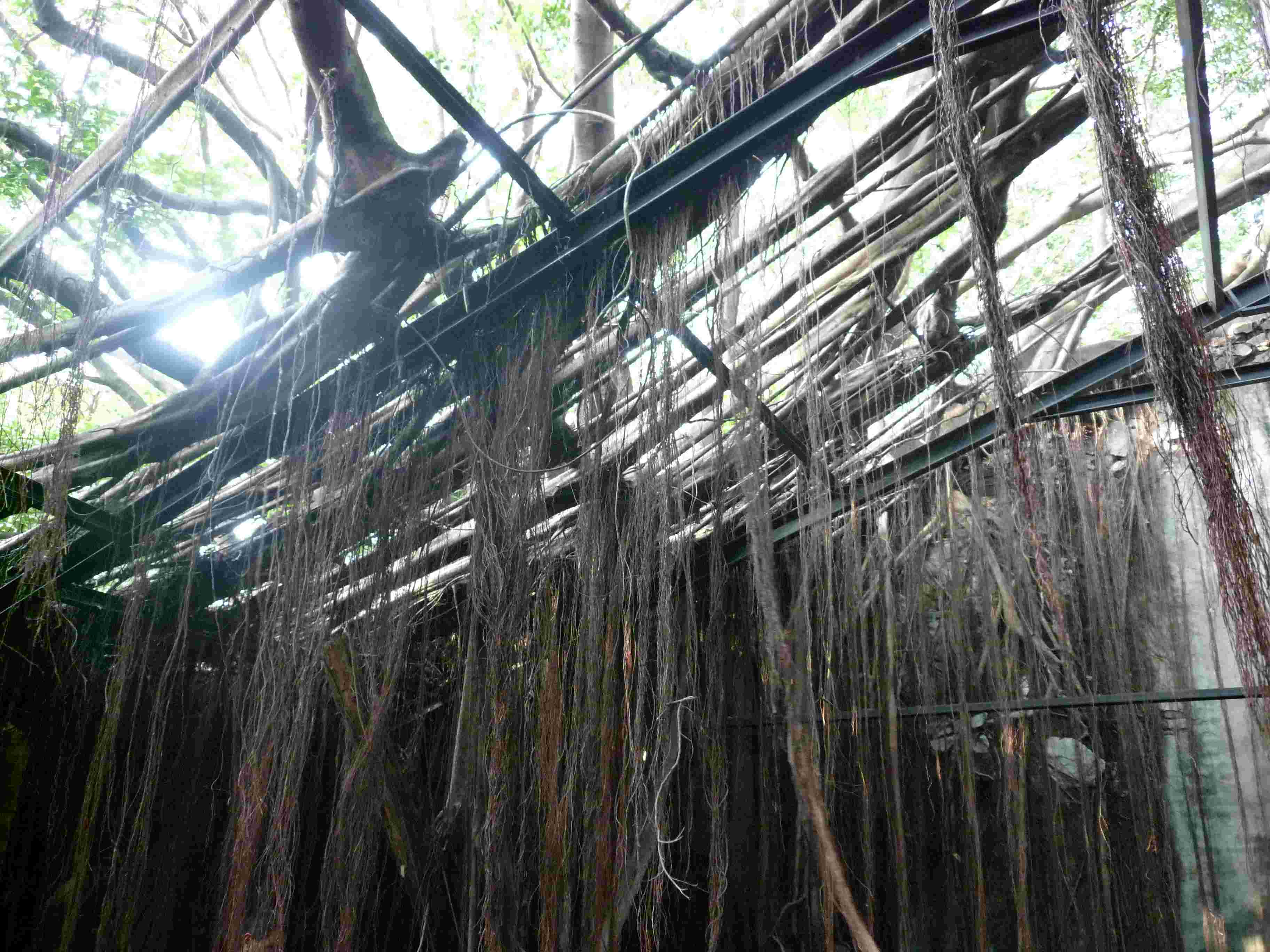 安平树屋,即英商德记洋行的仓库。德记洋行设于同治年间,经营茶叶出口贸易,并办保险及银行代理。树屋是当时的仓库,废弃之后,由于老榕树不断地生殖繁衍,其气根自然而然地损坏了屋顶,从上垂下攀附生根,又长出了一颗颗榕树,因此规模越来越大,形成了“树以墙为干,屋以叶为瓦”的特殊景观,然人不得不佩服大自然的鬼斧神工。