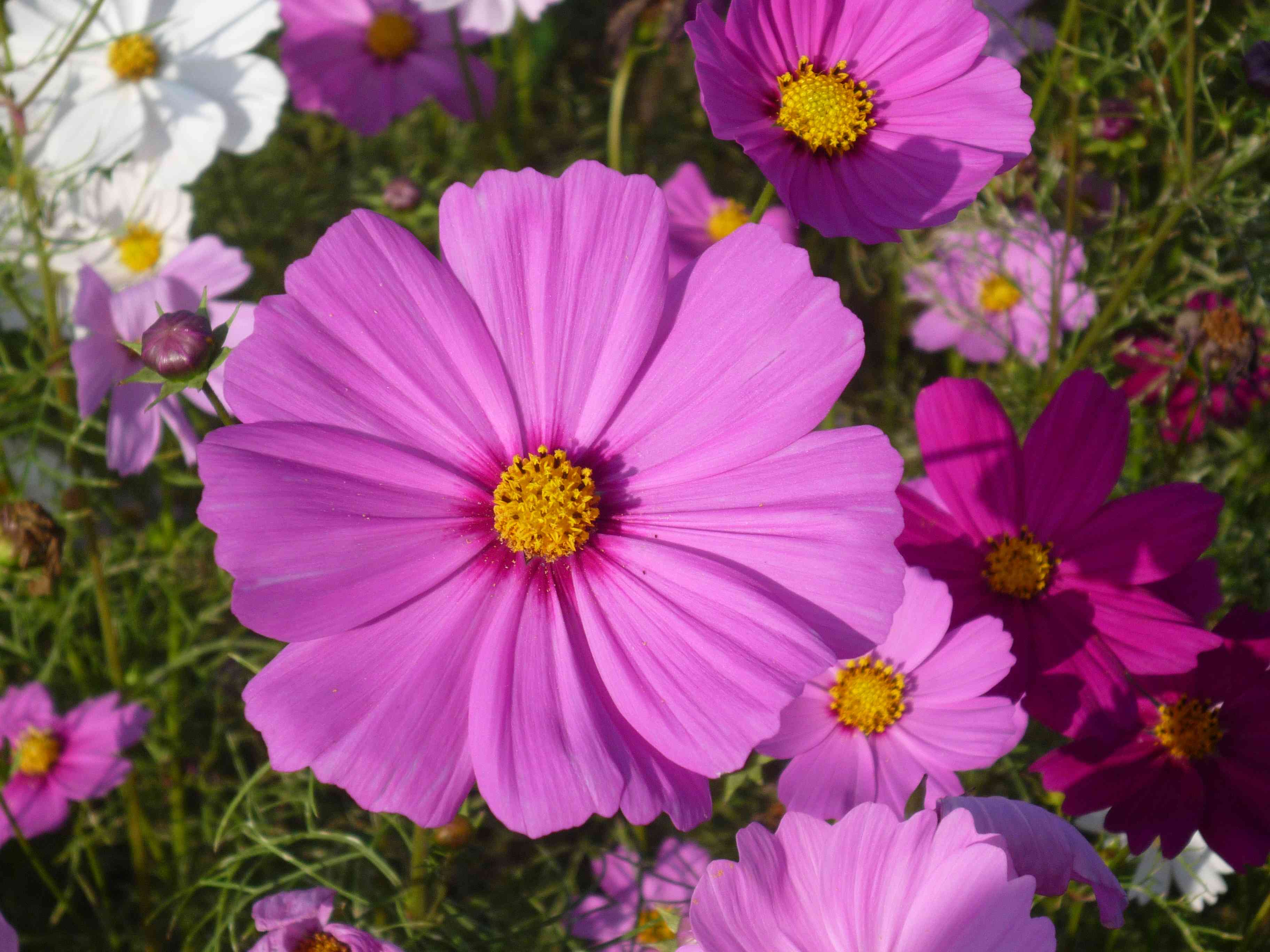 远远地望见前方有阵阵人浪涌动,花海,近了!首先映入眼帘的是大片的金黄,随着风向来回摆动,好像是向远道而来的游客致敬。会是什么呢?菊花吗,还是?走近一看,原来是向日葵,一朵朵都面朝着太阳的方向尽情地绽放着,给人以生机与活力。穿过向日葵区中间的小路,前面迎接我们的是主展区,这儿种植着大量的波斯菊,以白色、粉色、和黄色为主。主展区内又被分成了若干个小区,每个小区都是由三种颜色的波斯菊板块呈倒三角形组合而成。来自四面八方的游客忙着和这些花儿拍照,蝴蝶也赶来凑兴,成为花海中最灵动的点缀。