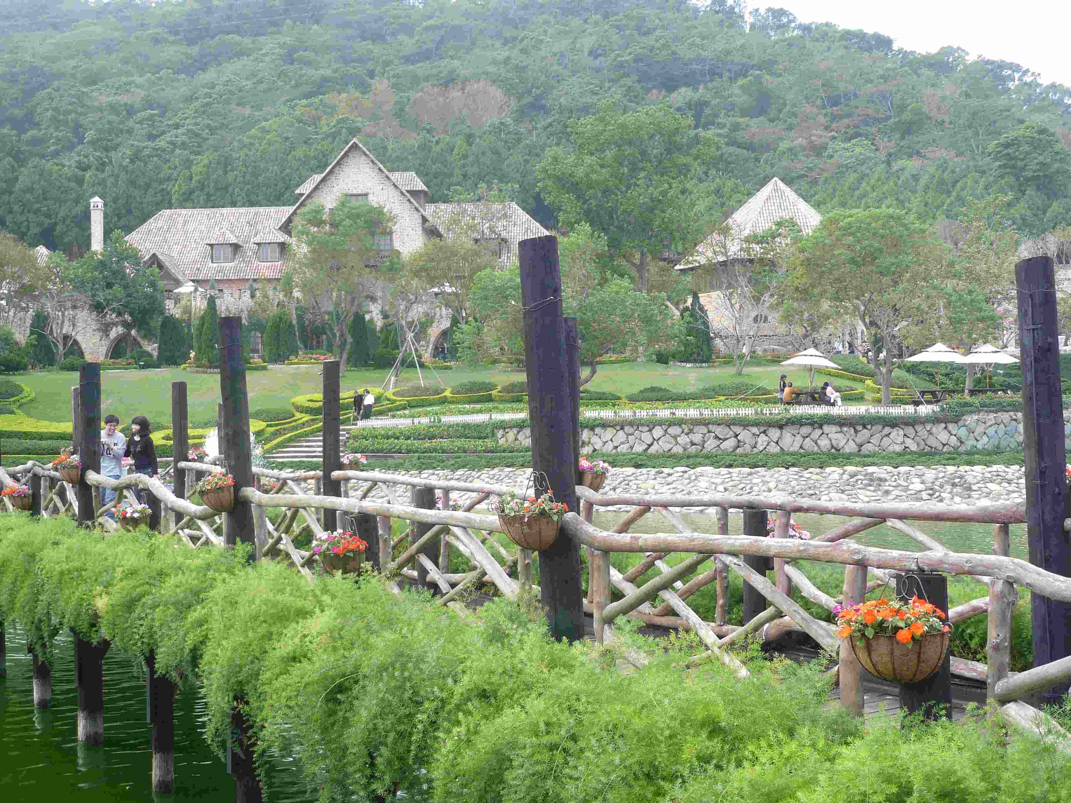 置身浪漫欧洲,古堡花园中;徜徉自然森林,青山绿水间。台中新社庄园可谓是藏在深山的幽兰,由于远离尘世,便多了几分特别的韵味。新社庄园并不像一般的水泥建筑突兀地立在山中,而是以浑然天成的姿态,与山水融为一体。当初设计的理念就是要给人以全方位的美感,事实上它也做到了360°的美丽。漫步庄园,仿佛回到了中古世纪的欧洲,,一个又一个的视觉冲击让人目不暇接。庄园依山而建,中间有一个巨大的湖泊,古堡、花园、酒庄都围绕在湖泊周围,两岸有小桥连接,还有迷雾喷泉居于一角。远处,有登山步道,枫树林和树屋。从瞭望塔上俯瞰全庄,这次第,怎一个美字了得啊!