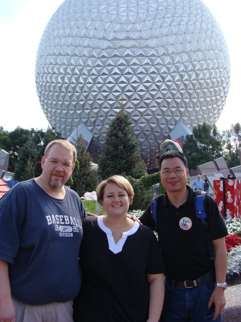 (身后圆圆的白色大家伙就是Spaceship Earth)