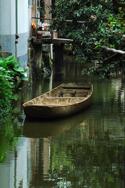 走进了这座不经雕刻的民俗博物馆。小洲村河道环绕,巷巷相连,古木郁郁葱葱,河中停泊着木船,河水经年累月拍打着古码头。岭南水乡之气息,轻轻地与江面上的雾气起舞。寻寻觅觅,见到了传说中的小洲人民礼堂。浅黄色的皮肤,写下的是历史与沧桑。墙面上的字体略显隽永,虽算不上飘逸,但也有几分神韵。小洲人民礼堂始建于1959年,至今已有50多年的历史。大门紧闭,但是我们仍能想象到当时农民生产队在这里议论村里的大事的情景。旁边的嫁女饼,算是带着广东地区婚姻文化的地方味。民风醇厚的人们,在女儿出嫁时都会不厌其烦地往来亲友家派饼。他们恪守着这一传统,并身体力行地把嫁女饼派送给亲朋好友。尝了一小块,味道跟普通的饼没有太大区别,但或是因为在小洲村里吃着,别有一番滋味。