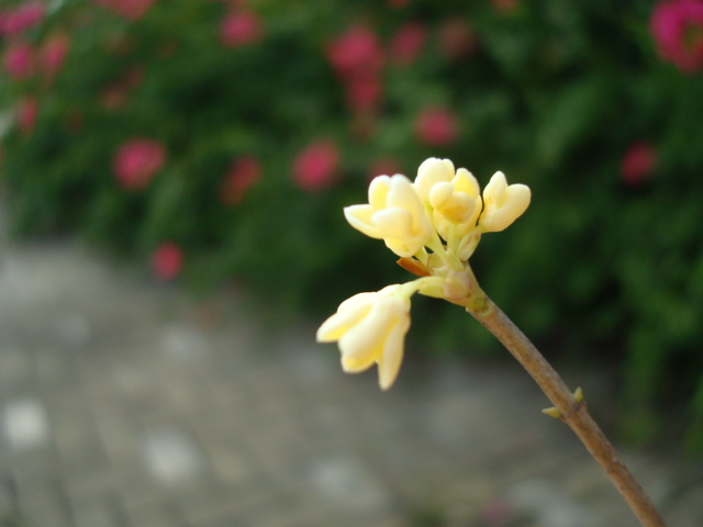 树下洒了一片点点雪花般的花朵 我轻轻地拾起一朵 不知道是什么时候飘落枝头 花瓣已经是残黄色 然而 芬芳却是一如既往 花陨香依旧 一支有几朵小花的花枝 也许是被十一月凛冽的风折断了 却还如树上的花朵那般 花容柔美