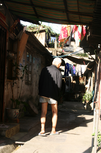 走过寂寞的巷道,眼前出现了一位跛脚的老者,一身让人心恸的装束,一瘸一瘸地,在他人生的秋天里走过。