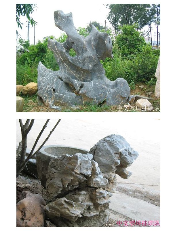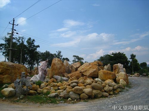 非玉非金音韵清,不雕不刻胸怀透。 甘心埋没苦终身,盛世搜罗谁肯漏。 幸得硁硁磨不磷,于今颖脱出诸袖。 这是清人陈洪范对英石的精彩描述。 英石,中国传统四大名石之一,产于广东英德而得名,而英德市的 望埠镇是其真正的故乡。 在三下乡期间,望埠挂职队的的中文学子们观30公里奇石长廊、听 奇石协会会长的生动讲座,初步了解了英石文化。