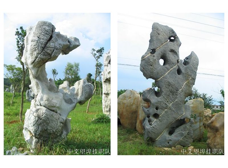 玲珑剔透、千姿百态的英石 宋代是赏石文化的鼎盛时期,著名书画家米芾酷爱英石, 提出了英石的赏 石标准:“瘦、皱、漏、透”。