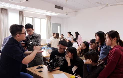 本网讯 1月10日至14日,新闻与传播学院16级新闻系开展了视频拍摄与制作工作坊实践活动。本次工作坊是新闻与传播学院实践教学周的特色教研活动之一,旨在提升学生的业务操作技能。来自广东电视台的导演张懿从影片制作的基本知识讲授入手,到剧本的撰写、视频的实地拍摄、剪辑和后期制作,对学生进行全程指导,并带领32名同学在5天时间内创作出了MV、广告、新闻专题、纪录片四大类别的短视频作品。