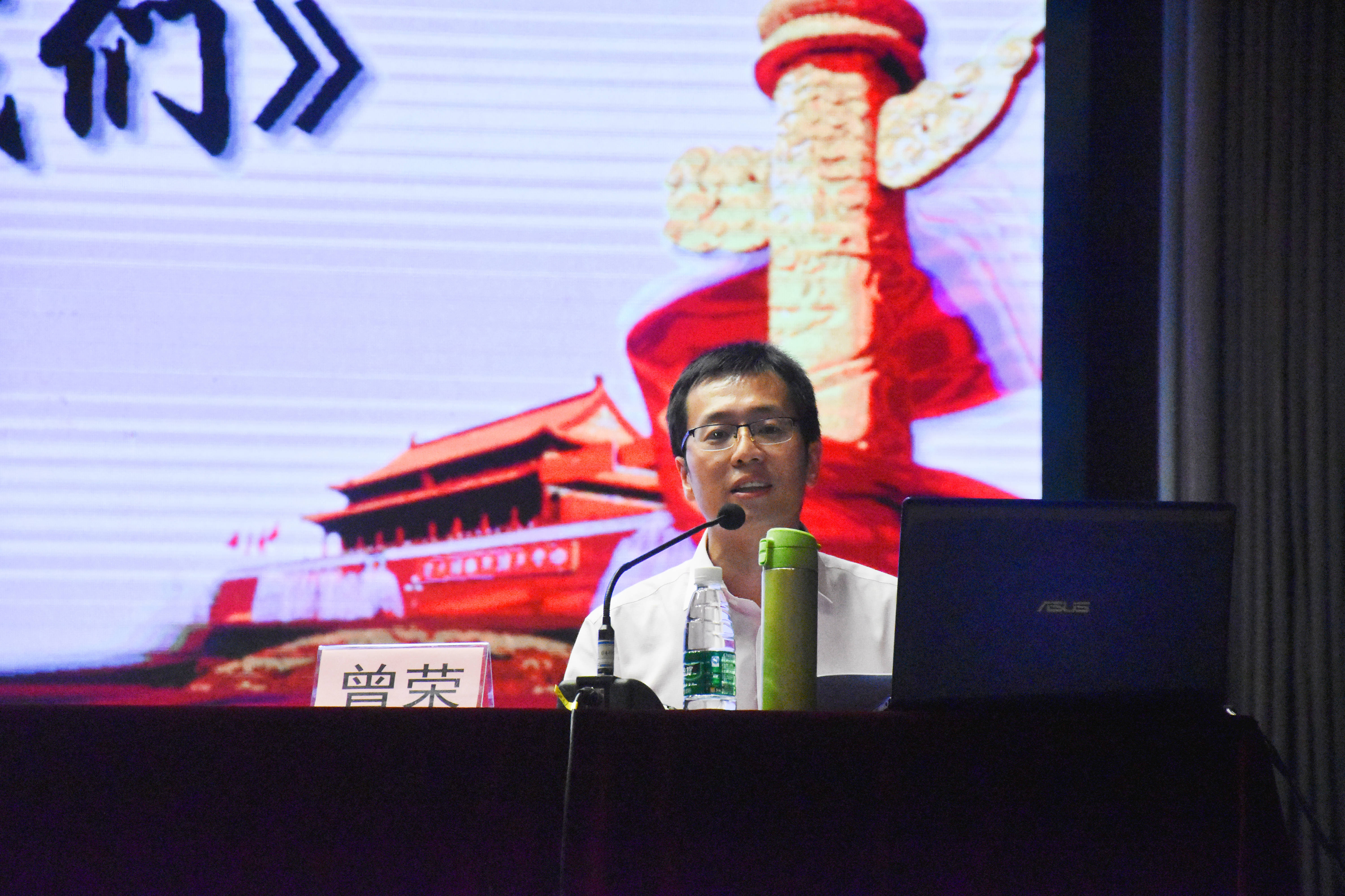 曾荣以《马克思与走进新时代的我们》为题,把马克思的宝贵思想和新时代的历史观、人生观、世界观相结合展开论述,通过解读历史教材,朗读经典,剖析社会案件等方式跟现场同学们分析了马克思主义同“走进新时代的我们”之间的关系。他强调,马克思主义在当代焕发出了新的魅力,面对新时代、新方位、新征程、新使命,当代大学生政治上要有坚定的理想信念与政治立场,思想上要自觉践行社会主义核心价值观,能力上要有新时代的专业知识和劳动技能,行动上要不忘初心,努力前行,为决胜全面小康社会实现中国梦而奋斗。