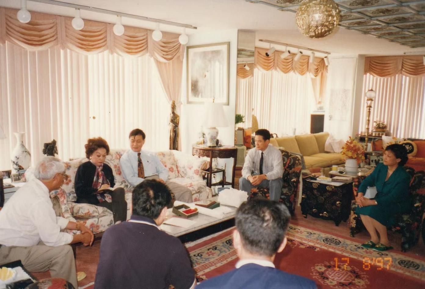 鲁大铮(左二)在番禺南沙采访霍英东先生