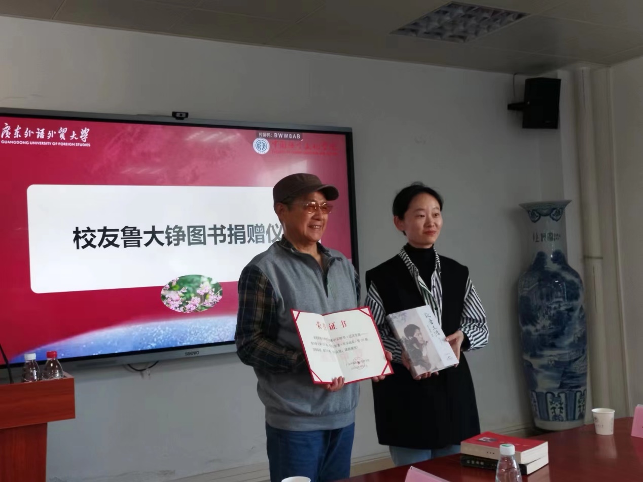 鲁大铮校友伉俪向伟德bv国际体育图书馆捐赠《记者生涯——鲁大铮文集》及李凌先生著作《音乐流花》等一批图书。孟小玲老师代表伟德bv国际体育图书馆接受捐赠并向鲁大铮颁授捐赠证书。校友发展处处长肖锋出席活动。本次讲座由中文学院党委副书记吴俊峰主持。