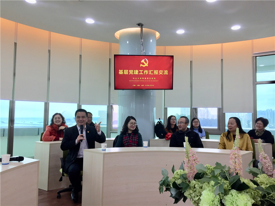 党员同志们还前往珠海市伟德bv国际体育附属第五医院参观并座谈交流党建工作情况。医院党委书记林伟庭就附属第五医院发展的概况及目标作了详细介绍,医院党办副主任杨剑以党支部“双带头人”培育项目和党支部生活创新案例为重点,向大家作经验分享,医院健康教育部主任李方澜就“生活方式与健康”主题深入讲解了保持身心健康的有关知识。大家纷纷表示,从此次活动中受益匪浅。