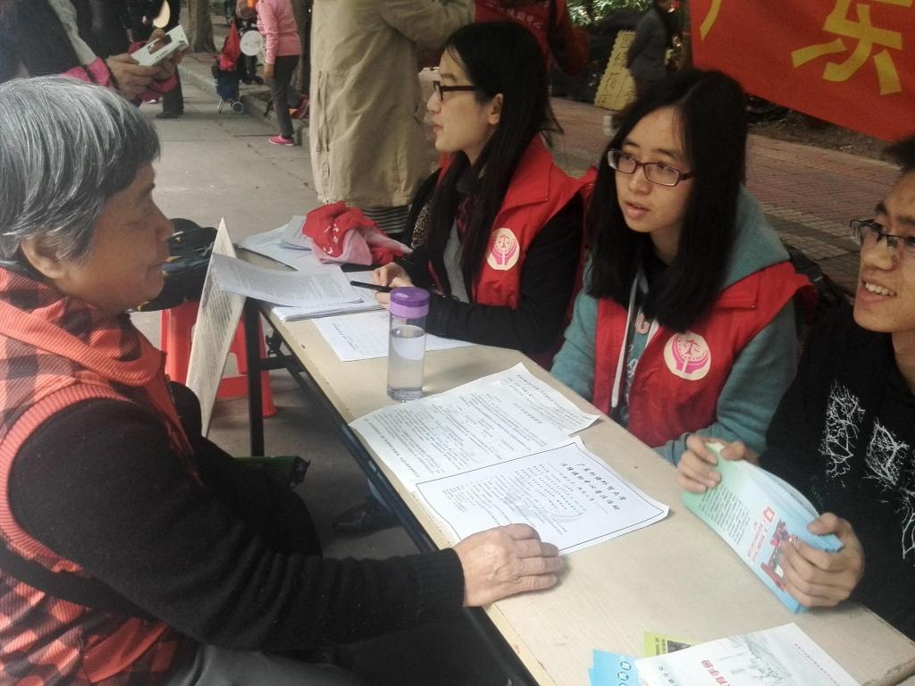 除了发展校内,法援还设立了三个法律援助的驻点,被称为“点灯计划”。之前法援的另外一个主管——徐嘉敏在她生活的社区发现有些家庭综合服务中心或者居委会经常会收到居民的法律咨询,但是他们自身没有足够的专业知识解答。叶昌富认为这是开发案源,走出校园服务社会的好机会,于是让法院和一些服务中心或者居委会联系。14年12月,法援正式和三个街区签约,分别是现代化的天河区枫叶居委会、位于城乡结合部的萝岗区九龙镇龙片区、还有外来人口众多的番禺区钟村镇家庭综合服务中心。