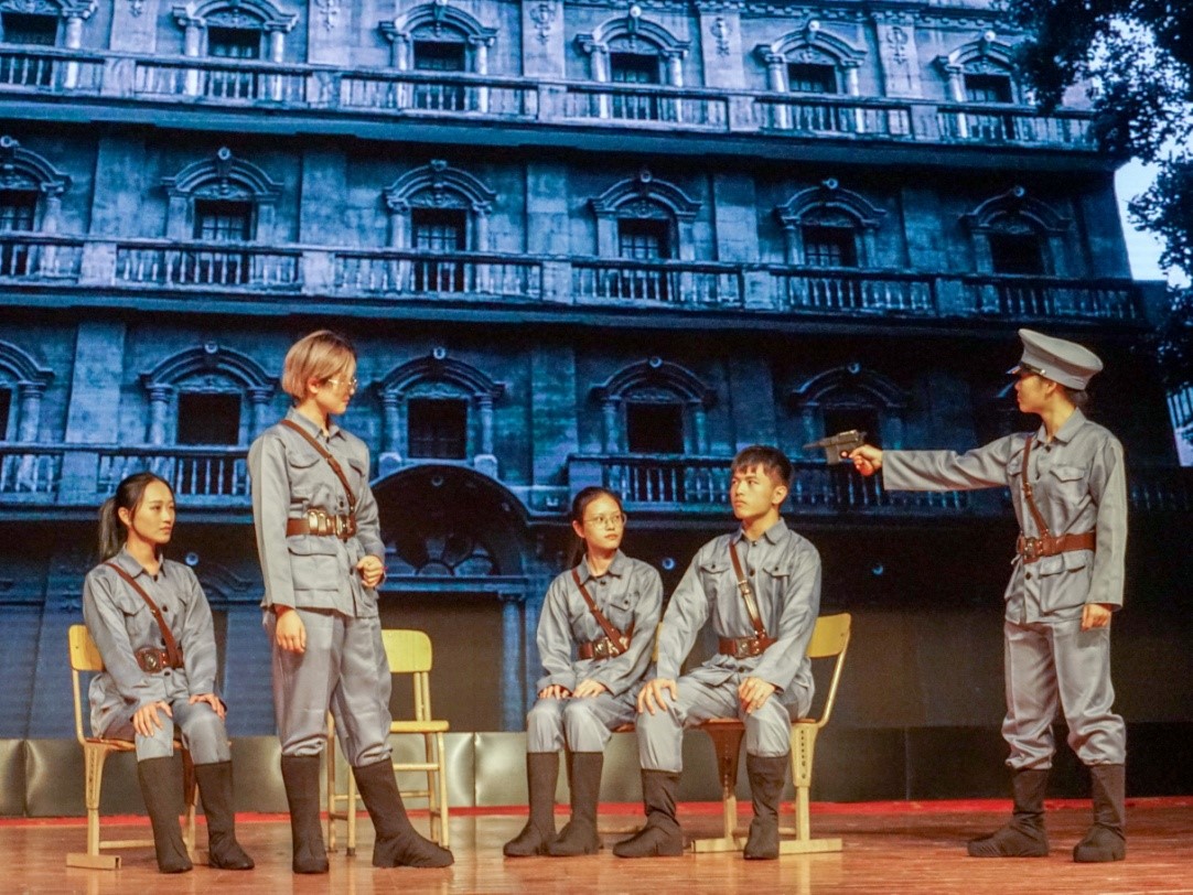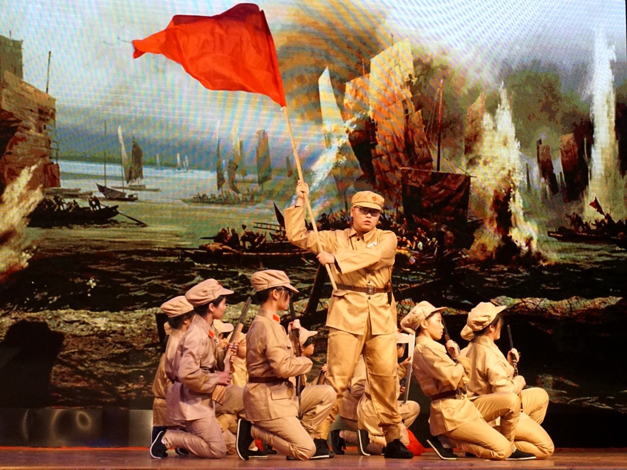 法学1702的舞台剧《渡江战役》讲述了解放战争中这著名的一战,表达了人民群众对共产党解放中国的期冀,展示了共产党强大坚实的群众基础。在由政治学1701呈现的舞台剧《军魂未息,情义长存》中,二十位身着蓝白舞服的姑娘挥着衣摆徐徐登场,在黑暗中点亮盏盏红色蜡烛。故事讲述了一位执意参军的男人选择离开深爱他的妻子,最终战死沙场的故事。