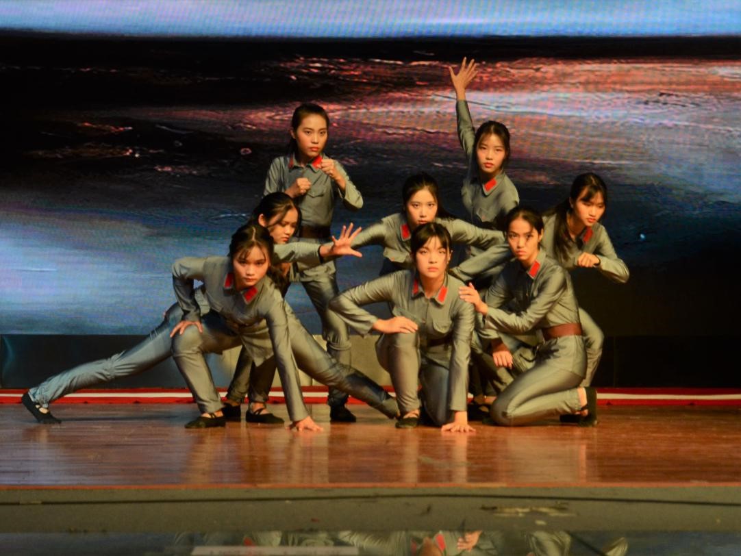 民商1602表演的《汶川大地震》还原了地震现场和震后救援行动,重现了当时人们痛苦而绝望的心情。舞台剧着重讲述余震再发时伟大的武警战士为救人而壮烈牺牲的感人事迹中,体现了武警战士的奉献精神和不畏牺牲的伟大品质。随后,法学院司仪队身着军服,声情并茂地朗诵了《热血军人》,以挺拔的身姿和铿锵有力的声音向军人致以最崇高的敬意。