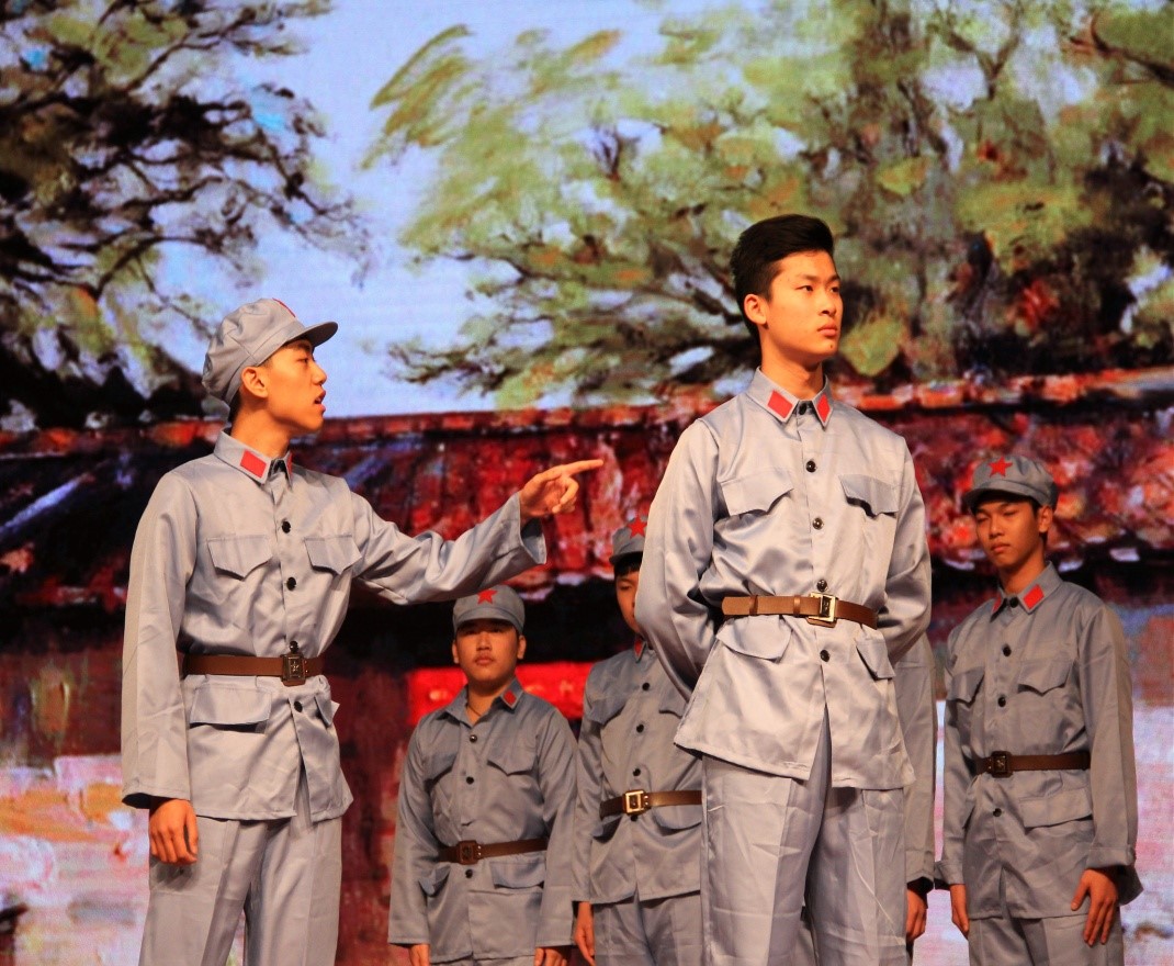 国经1602班的话剧《古田曙光》用精彩的表演为观众讲述了我军创建初期政治工作的实践经历,展现了毛泽东、朱德等领导人如何创造性地回答和解决了“党指挥枪”等军队建设一系列基本问题的历史故事。