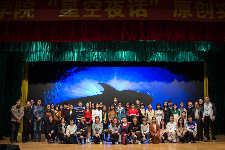 本网讯 12月9日晚,伟德bv国际体育凤鸣云山剧社今年全新推出的活动“星空夜话”原创实验剧场在六教报告厅上演,这是伟德bv国际体育党委推出的“铸魂·系扣”工程的系列活动之一。剧场以“赤子之心”为题,每一幕均为剧社新人自编自导自演,以复杂的社会环境作为创作背景,展现了怀着赤子之心的他们对世界的独特看法。