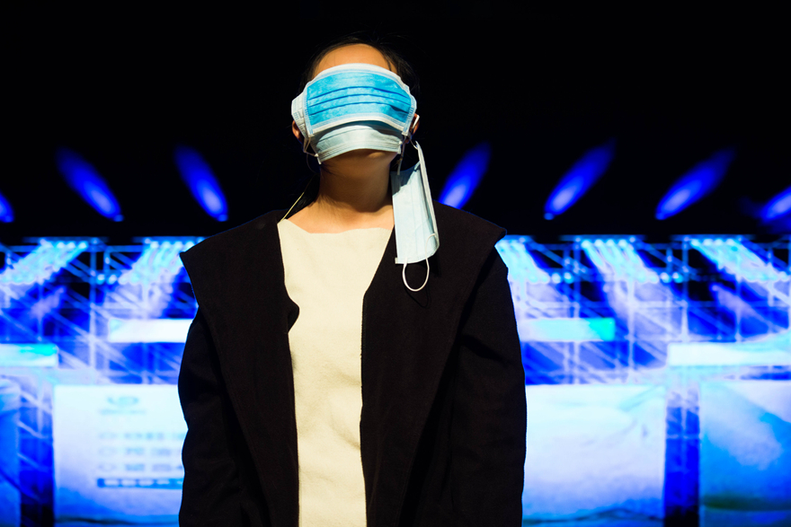 《尘》以助理寻找清洁工阿姨为故事开头,为情节的发展做了铺垫,还用粤语穿插其中,贴近现实生活,显得生动而有些许意味,引起现场观众的共鸣。大明星为博取大众好感,表现高尚的品德,假惺惺地进行公益活动。可当清洁工阿姨决定揭露大明星的真面目时,女儿阻拦,记者迫于大明星的势力不让她发言。故事的最后,以记者、大明星、女儿甚至她自己为自己戴上一层一层的口罩为结束,暗示被一只手掩藏的真相,引人深思。