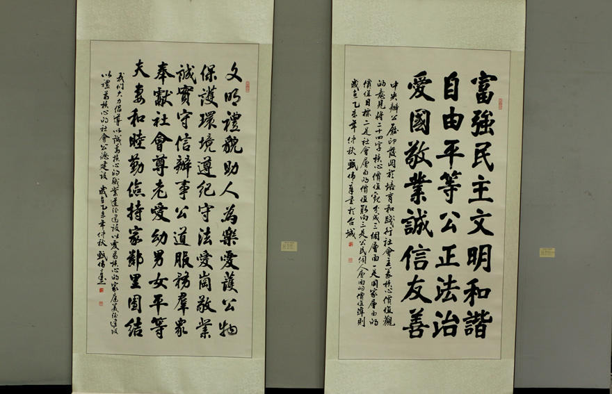 参观过程中,李于昆和朱珍葶一一介绍了这些优秀作品。对于艺术学院采用书画形式表现社会主义核心价值观这一创新活动,石佑启非常赞赏:“艺术学院运用新颖的形式,对社会主义核心价值观做了形象的诠释。让人对社会主义核心价值观的认识更立体、更丰富、更生动,十分值得学习和推广。”