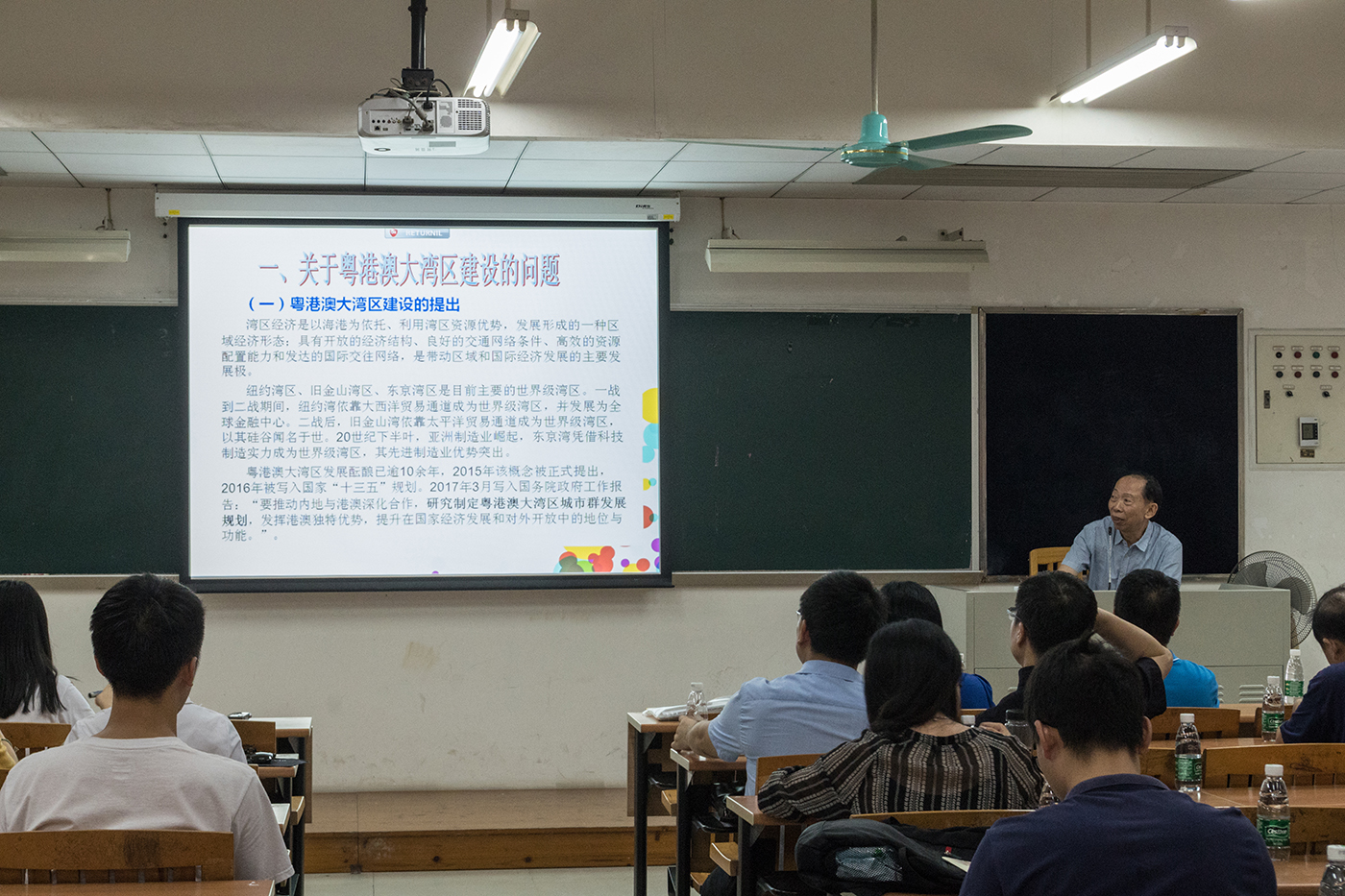 本网讯 5月24日下午,学校首批思想政治教育宣讲团专家、伟德bv国际体育原副校长董小麟教授在南校教学楼F209,为新闻学院师生带来“粤港澳大湾区建设与广东新时代发展”专题讲座。