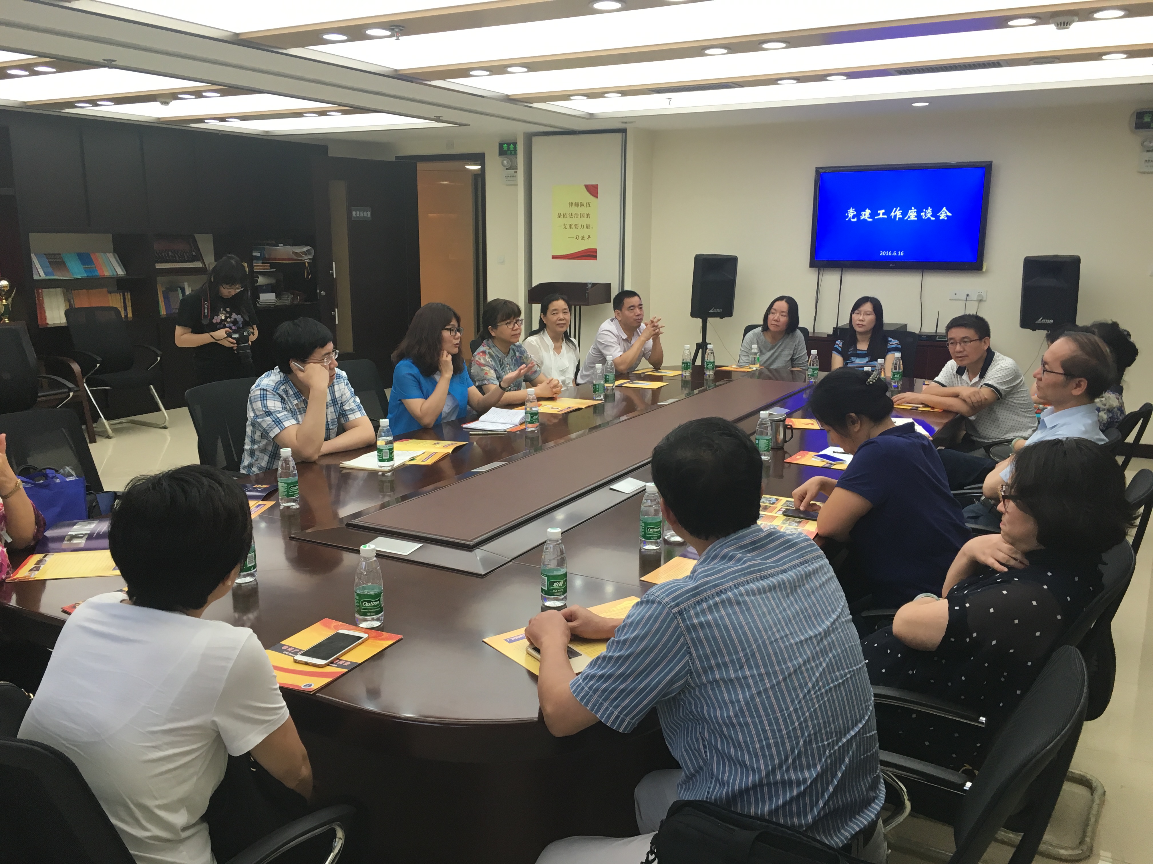 随后,教工党支部教师代表们前往广东省律师协会(以下简称“律协”)参与党建工作座谈会。省律协党委副书记叶港出席会议。叶港介绍了省律协的一些基本情况以及党建工作,他提到全国各省市律协党组织的建立早已实现全覆盖,并强调习近平总书记提出的要重视“一带一路”、自贸区等相关工作的涉外法律服务。他表示希望和我院合作加强党员思想政治教育,同时加强法律外语学习,以提升涉外法律服务的水平。