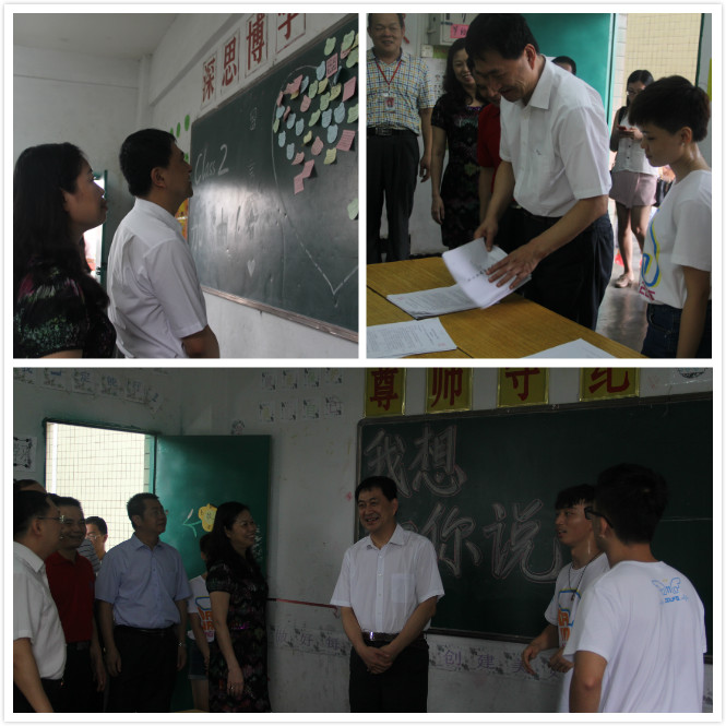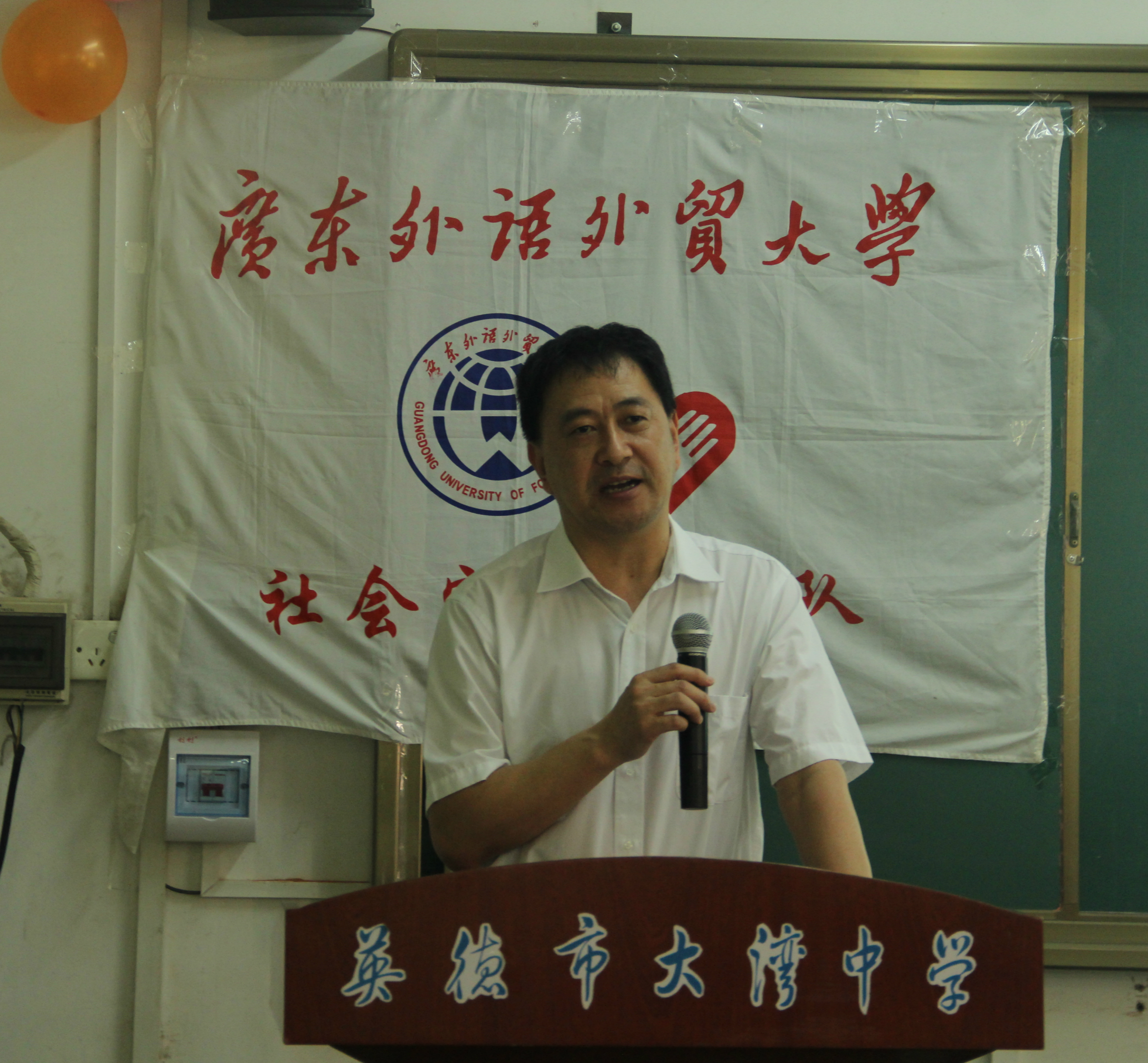 7月27日,伟德bv国际体育党委书记隋广军和副校长刘海春,在党委组织部部长方迎生、校团委书记苏奕和英语教育学院党委书记林绍雄的陪同下,来到清远英德市大湾镇,看望和慰问在大湾中学开展三下乡活动的英语教育学院学生。隋书记参观学生教学与住宿环境,观摩三下乡闭幕式,并在闭幕式上发言,肯定了大湾队的三下乡成果。英德市副市长陈坚英、教育局局长郑中重、大湾镇党委书记陈斌、大湾中学校长黄亚清也参加了此次活动。
