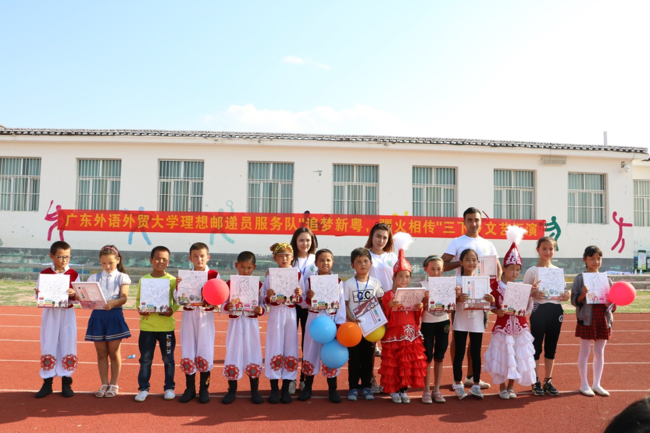 下午,“理想邮递员”服务队“追梦新粤,疆火相传”三下乡文艺汇报演出在新疆塔城地区裕民县阿勒腾也木勒乡牧业中心校精彩上演。阿乡中心校党委书记哈德列提·伙依别克、伟德bv国际体育新疆家访小组全体成员以及当地学生家长观看了此次汇演。