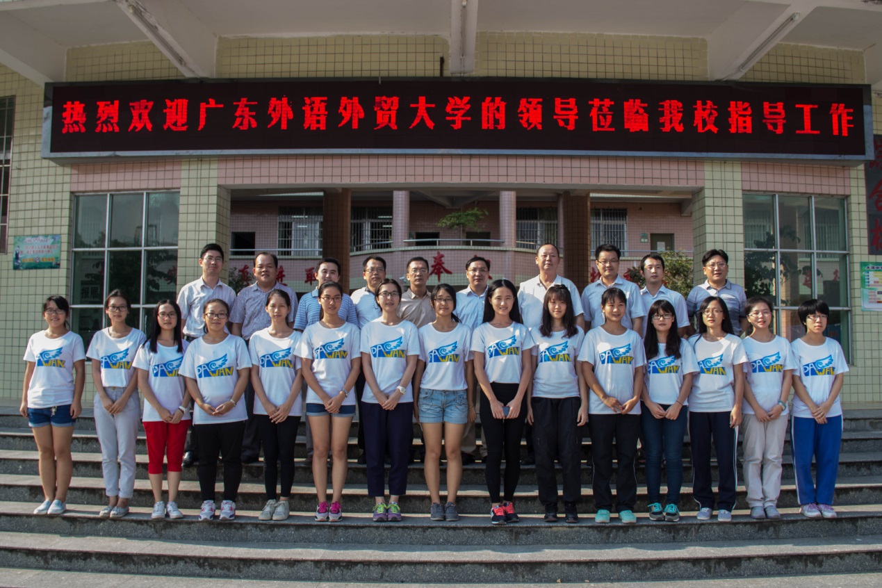 本网讯 2015年是英语教育学院大湾服务队与大湾中学合作的第十年。8月6日,伟德bv国际体育副校长刘海春和英德市教育局局长郑中重亲临英德市大湾镇大湾中学,对参加今年“三下乡”社会实践的英语教育学院大湾服务队队员表示慰问,并对服务队的工作进行了指导。陪同慰问的还有校党委宣传部部长胡文涛、校团委副书记苏奕、校团委副书记余海波、英语教育学院党委副书记徐昶斌、英德市团委副书记霍珏任、大湾镇党委书记陈斌、大湾镇党委委员卢素平以及大湾中学校长黄亚清。